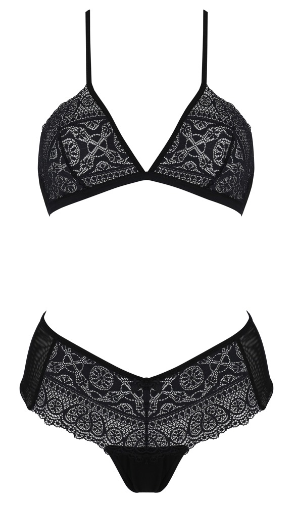 Bikini Kerria z kolekcji Eco marki Passion składa się z miękkiego stanika i majtek wykonanych z elastycznego materiału Powernet z piękną koronką na przodzie. Majtki są dwuwarstwowe od spodu. Ramiączka biustonosza krzyżują się z tyłu w pierścieniu i są regulowane, co umożliwia idealne dopasowanie.