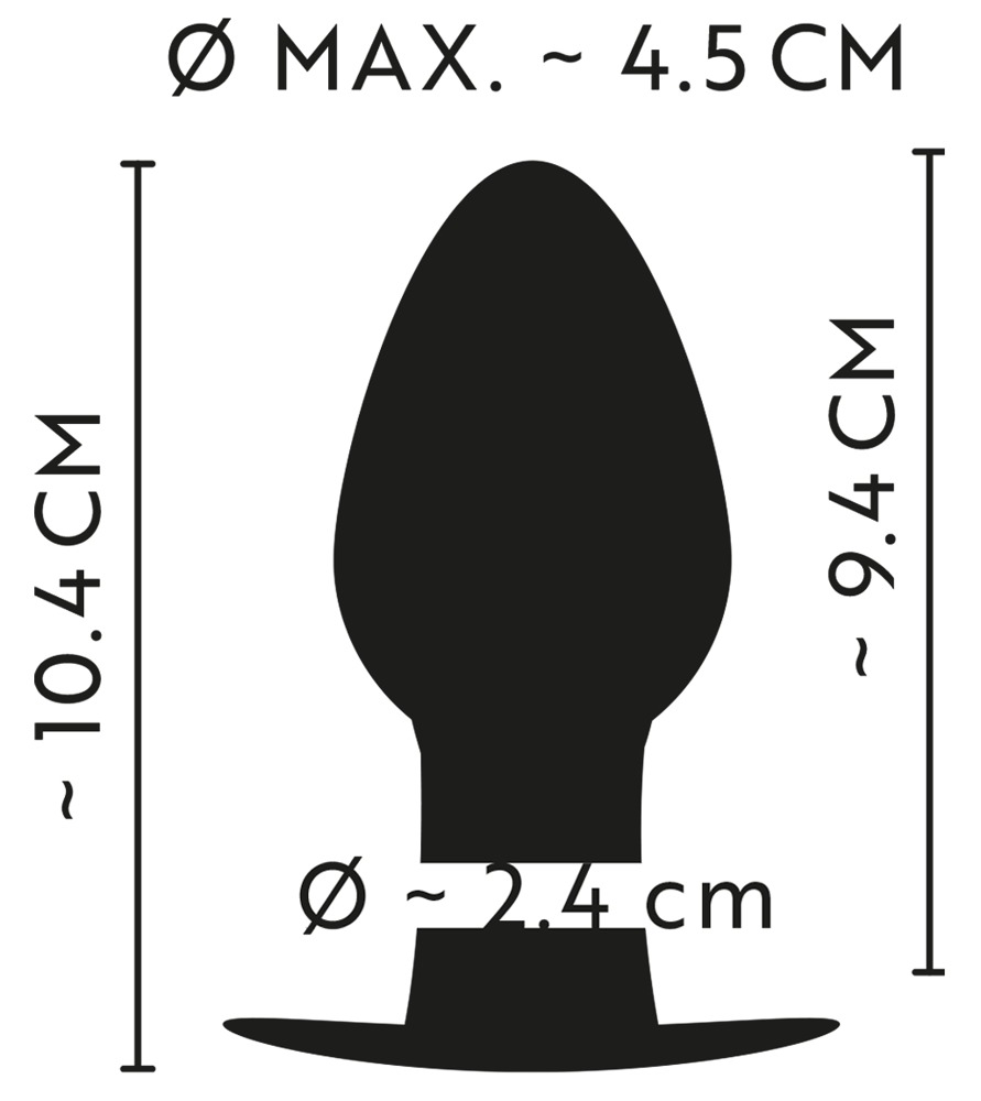 Długość całkowita 10,4 cm, długość wkładki 9,4 cm, Ø maks. 4,5 cm, Ø stożka 2,4 cm.
