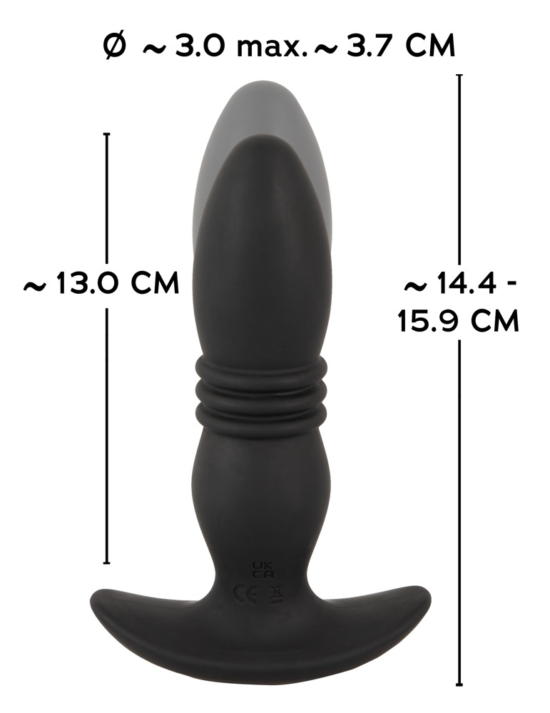 Vibro anal plug RC Thrusting Massager marki ANOS z funkcją potężnego pchania. Do głębokiej stymulacji analnej z wrażliwą, zaokrągloną końcówką, która wielokrotnie pchnięta stymuluje prostatę. Wibracje mogą być również silnie odczuwalne na kroczu, gdy plug jest założony.
