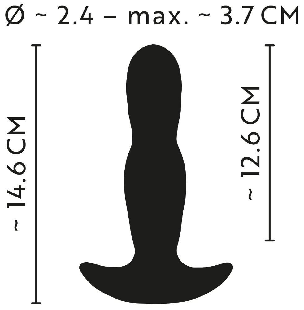 Vibro anal plug RC Inflatable Massager firmy ANOS do wypełniającej stymulacji analnej z zaokrągloną, rowkowaną końcówką, która może być nadmuchiwana gruba i puszysta. Wibracje mogą być również silnie odczuwalne na kroczu, gdy plug jest założony.