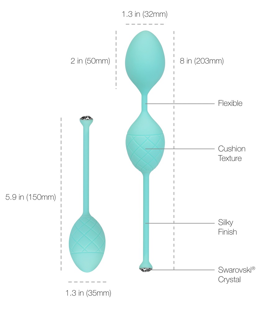Zestaw piłeczek miłosnych, składający się z 1 pojedynczej piłki i 1 duetu piłeczek w kształcie elipsy wraz z elastyczną taśmą powrotną z kryształem Swarovski®. Piłki miłosne doskonale nadają się do ćwiczeń dna miednicy: wewnątrz, obracające się ciężarki wywołują wibracje przy każdym ruchu, które prowadzą do wzmocnienia skurczów mięśni. Wizualnie, Love Balls przekonują swoim szlachetnym wzornictwem i modnym wyglądem pikowanych wzorów. Z jedwabistą, miękką w dotyku powierzchnią.