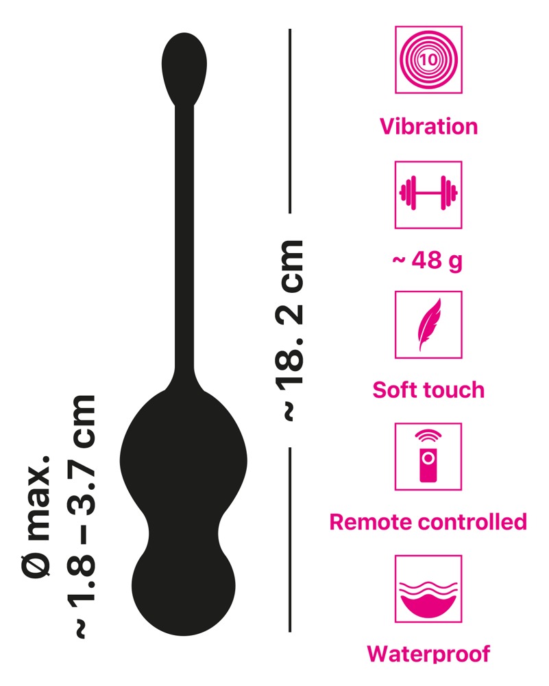 Dzięki wadze 48 g ten duet kulek wibracyjnych jest idealny do początkującego treningu waginalnego. Wykonana w całości z przyjaznego dla skóry silikonu o jedwabiście miękkiej fakturze, wibro piłeczka duo jest łatwa do założenia i zapewnia najwyższy komfort treningu/pieszczot.