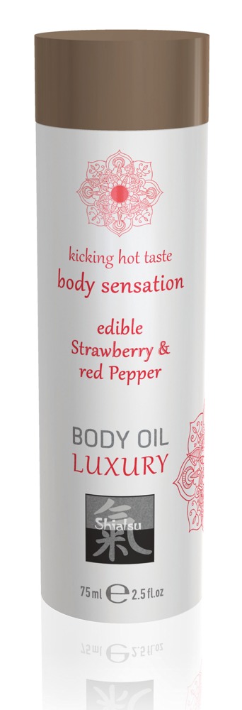 Olejek do masażu o zapachu i smaku ognistych truskawek i pieprzu, który rozpieszcza zmysły i budzi erotyczne nastroje. Olejek do masażu jest idealny do ustnych gier i eksploracji. 75 ml.