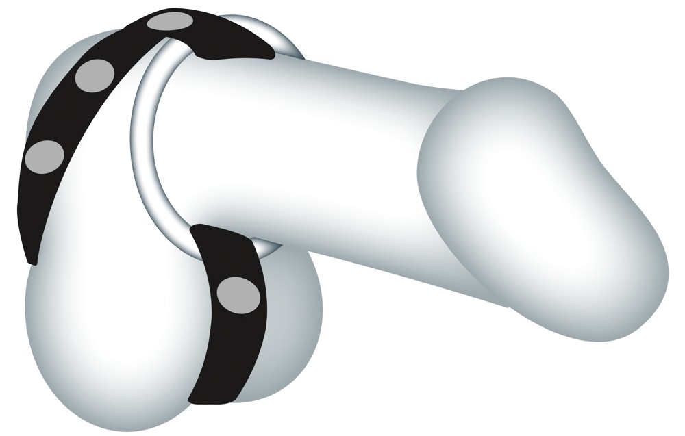 Czarny pasek marki Sextreme wykonany z wysokiej jakości imitacji skóry na penisa/jądra z 3 wymiennymi metalowymi pierścieniami na penisa: Ø 3 cm, Ø 3,5 cm i Ø ok. 3,8 cm. Ramiączka zapinane na zatrzaski z 2-krotną regulacją obwodu. Pierścienie na penisa łatwo wymienialne dzięki zatrzaskom.
