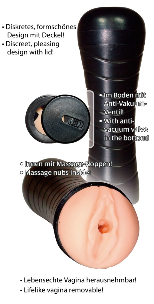 ... na gorącą, solową szybką jazdę między i w drodze! W dyskretnym, czarnym pudełku o czarnym wzornictwie, pod zgrabną pokrywką ukryta jest prawdziwa, rozpieszczająca cipka z grubymi masażowymi nubami. Cyna o długości 27 cm, Ø 6,5 cm do 8 cm, w dnie z zaworem przeciwzakłóceniowym dla zawsze śliskiej przyjemności przesuwania.