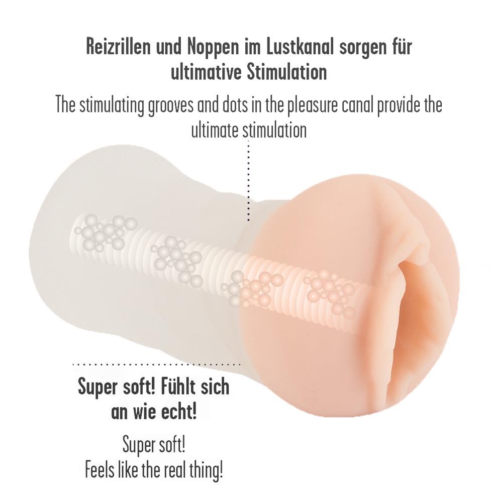 Poręczny miękki masturbator od Strokera o wyglądzie realistycznej waginy. Przezroczysty tunel rozkoszy wykonany z materiału przypominającego skórę ma wewnątrz wyraźnie ustrukturyzowane wypustki stymulujące i rowki, które zapewniają intensywny, skuteczny w orgazmie masaż podczas handjob. Siła nacisku może być łatwo zmieniana, aby uzyskać wspaniałe uczucie chwytania. Masturbator jest otwarty z tyłu - idealny dla dłuższych penisów - i dla łatwego czyszczenia.