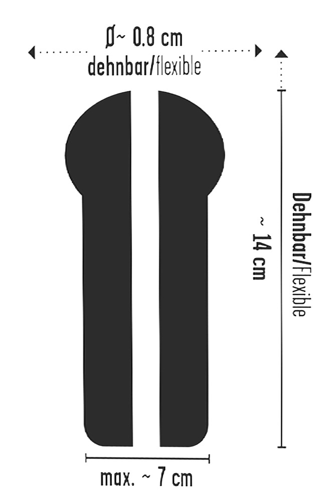 Całkowita długość/głębokość wkładania 14 cm, Ø zewnętrzna 5 cm do 7 cm, Ø wewnętrzna ciasna i rozciągliwa. Waga 293 g. TPR.