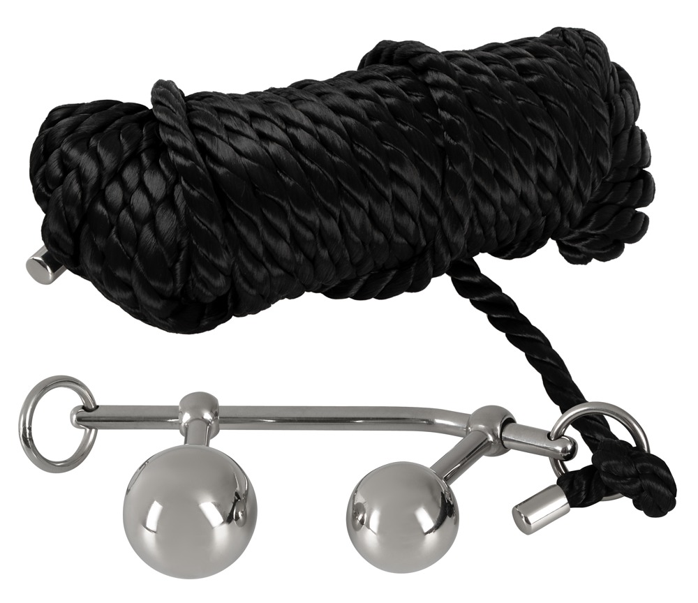 Zestaw Bondage Plugs with 10 m Rope firmy fetish collection zapewnia pożądliwe jednoczesne zamknięcie pochwy i odbytu oraz to, że tak pozostanie!