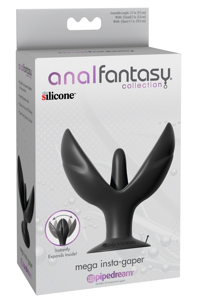 Mega Insta-Gaper ma przyjemną końcówkę, która otwiera się jak kwiat w odbycie i przyjemnie wypełnia go od wewnątrz. Miękka powierzchnia z łatwością wsuwa się w odbyt, a silna przyssawka umożliwia nawet jazdę bez użycia rąk na tym rozszerzaczu odbytu.