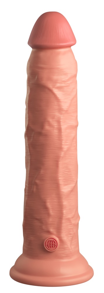 Wspaniałe dildo 9" Dual Density Silicone Cock przez King Cock Elite w hiperrealistyczny wygląd penisa wykonane z podwójnej gęstości materiału silikonowego, który czuje się jak prawdziwa skóra. Samo dildo ma twardy, ale elastyczny trzon, który przyjmie każdą pozycję.