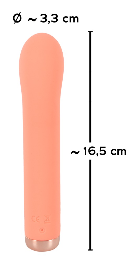 Pastelowy Mini G-Spot wibrator od peachy! ma idealnie zakrzywioną konstrukcję z puszystą główką do ukierunkowanej stymulacji Twojego punktu G lub P. 10 trybów wibracji zapewnia urozmaiconą zabawę z wariantami gry waginalnej i analnej i może być wygodnie sterowany w górę i w dół za pomocą przycisku. Wysokiej jakości materiał silikonowy z miękką w dotyku fakturą zapewnia bardzo przyjemne uczucie skóry podczas zabawy i pieszczot. Możliwość ładowania - w zestawie kabel USB do ładowania.