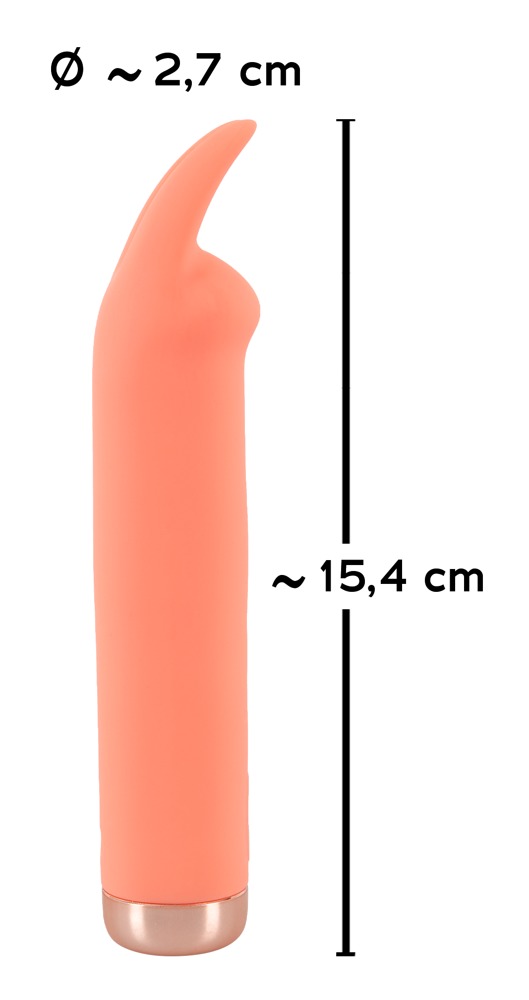 Pastelowo piękny mini wibrator peachy! z elastycznymi wibrouszami na górze - zmieści się w każdej kieszeni! 10 trybów wibracji zapewnia warianty gry waginalnej i analnej, a także stymulację zewnętrznych punktów przyjemności dla zróżnicowanej zabawy i może być wygodnie kontrolowane w górę iw dół za pomocą przycisku. Wysokiej jakości materiał silikonowy z miękką w dotyku fakturą zapewnia bardzo przyjemne uczucie skóry podczas zabawy i pieszczot. Możliwość ładowania - w zestawie kabel USB do ładowania.