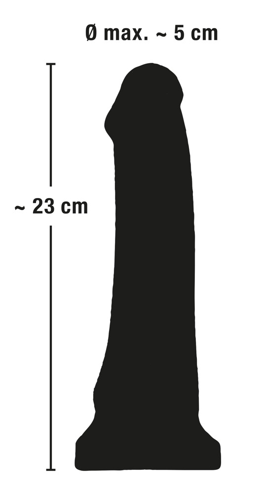 Około 23 cm długości całkowitej, Ø 3,5-5 cm. Materiał: PVC, ABS. (Prosimy zamawiać oddzielnie baterie: 3 x Mignon/AA).