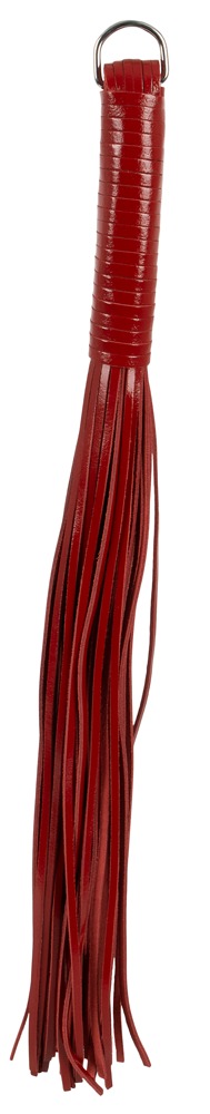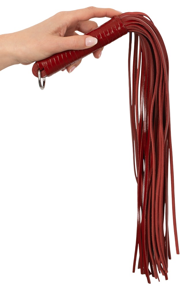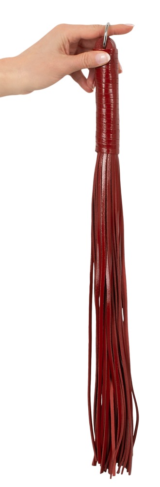 Dla gier przyjemności i uległości z eleganckim akcentem, ten pejcz jest właśnie właściwym narzędziem. Wysokiej jakości skórzany bat w szlachetnej optyce z połyskiem patentowym leży z jej/jego owiniętą skórą rękojeścią dobrze i wyważenie w dłoni i z dodatkową liczbą skórzanych pasków dostaje każdy dokładnie to, na co zasługuje: Strokes lub hard tour. Na końcu uchwytu metalowy pierścień.