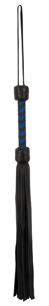 Wysokiej jakości skórzany flogger firmy ZADO do biczowania gier przyjemności i uległości z szlachetnym akcentem. Dzięki czarnej/niebiesko-królewskiej plecionej rękojeści i pętli do zawieszenia na końcu rękojeści, flogger dobrze leży w dłoni i jest zrównoważony. A dzięki szerokim paskom z miękkiej skóry, każdy sub dostaje dokładnie to, na co zasługuje: głaskanie lub twardą drogę.
