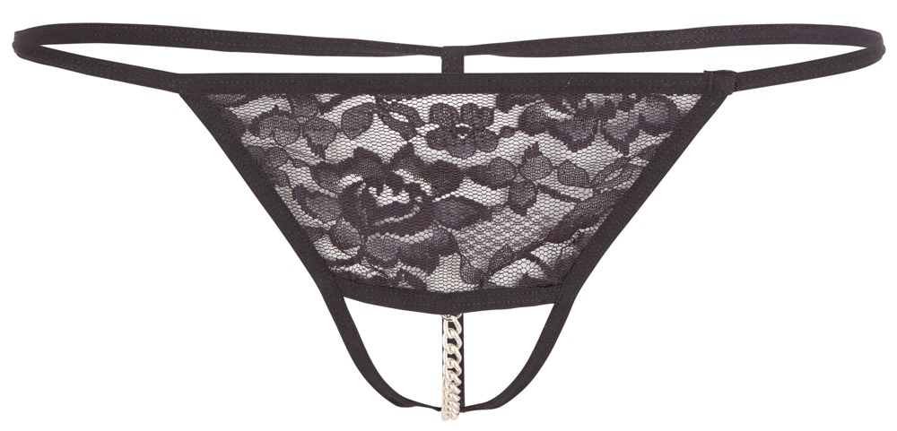 NO:XQSE - SEKSOWNE KORONKOWE STRINGI Z METALOWYM ŁAŃCUSZKIEM