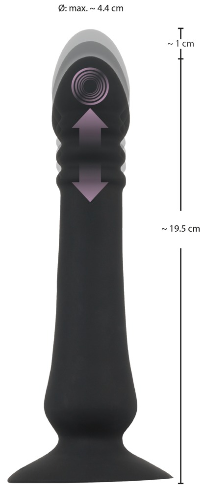 Anal Thruster wie, jak mocno pchać! Dzięki funkcji wibracji i pchnięć oferuje idealne warunki do intensywnej akcji w tylnej części penisa i intensywnych orgazmów analnych. Wibrująca główka jest przyjemnie okrągła i stymuluje analne centrum przyjemności z dokładnością co do punktu. 7 trybów wibracji i 3 prędkości wstrząsów mogą być kontrolowane oddzielnie i umożliwiają ekscytujące kombinacje. Dzięki zdalnemu sterowaniu jest to możliwe również podczas najdzikszej jazdy bez komplikacji. Dzięki przyssawce, Anal Thruster może być łatwo przymocowany do gładkich powierzchni, a ponieważ jest wodoodporny, zapewnia najwyższą przyjemność pchnięć również w łazience.
