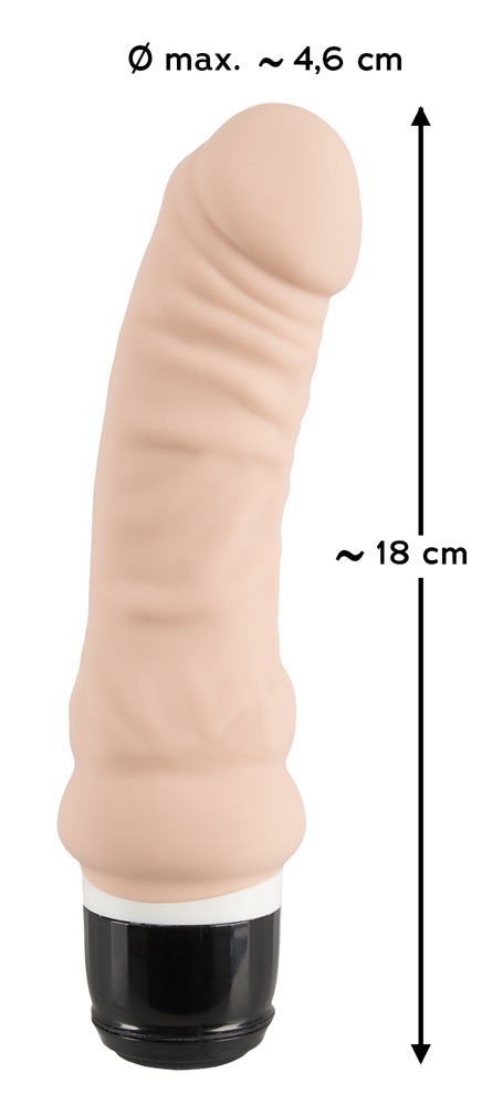 Długość całkowita 18 cm, długość wkładki 14,5 cm, Ø 4,6 cm. Silikon, PU, ABS.