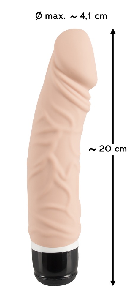 Długość całkowita 20 cm, długość wkładki 16,2 cm, Ø 4,1 cm. Silikon, PU, ABS.
