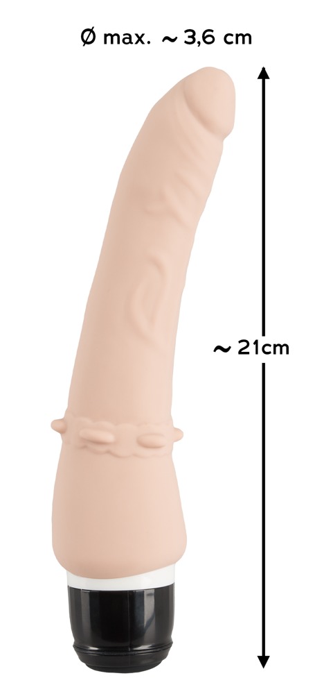 Długość całkowita 21 cm, długość wkładki 12,5 cm, Ø 3,6 cm. Silikon z powłoką PU, ABS.