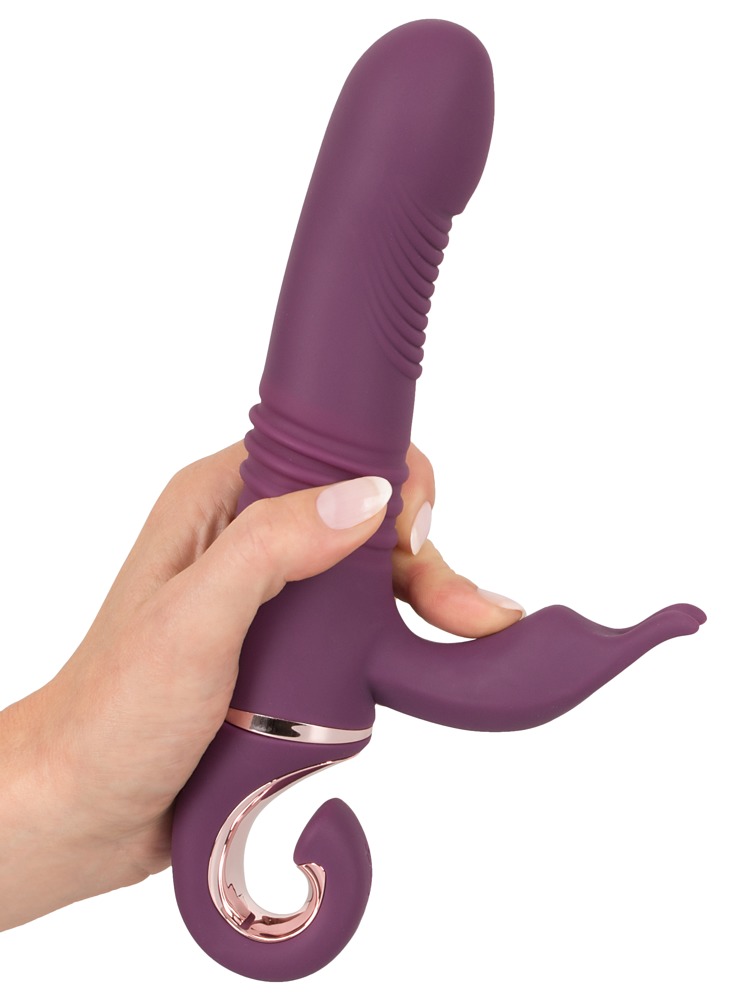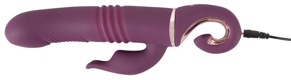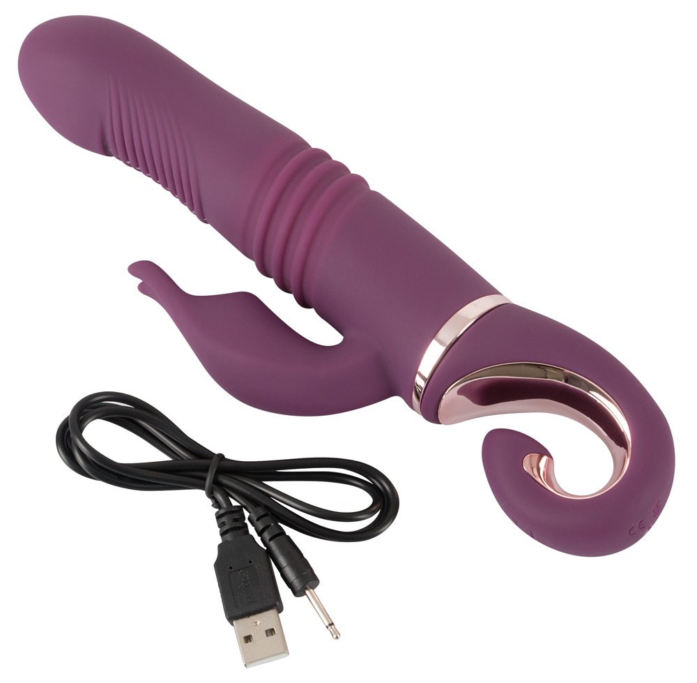 Wibrator wstrząsowy z elastycznym stymulatorem łechtaczki dla orgazmu-skuteczne wszechstronne rozpieszczanie: Jego pulchna główka wibrująca uderza specjalnie w jej punkt G, podczas gdy w tym samym czasie pochwa jest intensywnie masowana, a łechtaczka jest stymulowana podczas wibracji. 10 trybów wibracji i 8 trybów pchnięć zapewnia dużą różnorodność i może być wygodnie kontrolowane oddzielnie za pomocą jednego przycisku na praktycznym pierścieniu trzymającym/kontrolnym. Nawet w wannie lub pod prysznicem, ponieważ ten wyrafinowany wibrator jest wodoodporny! Wykonany z pieszczotliwie miękkiego silikonu o miękkiej w dotyku fakturze, zapewnia bardzo przyjemne doznania skórne podczas rozpieszczania. Możliwość ładowania - w zestawie kabel USB do ładowania.
