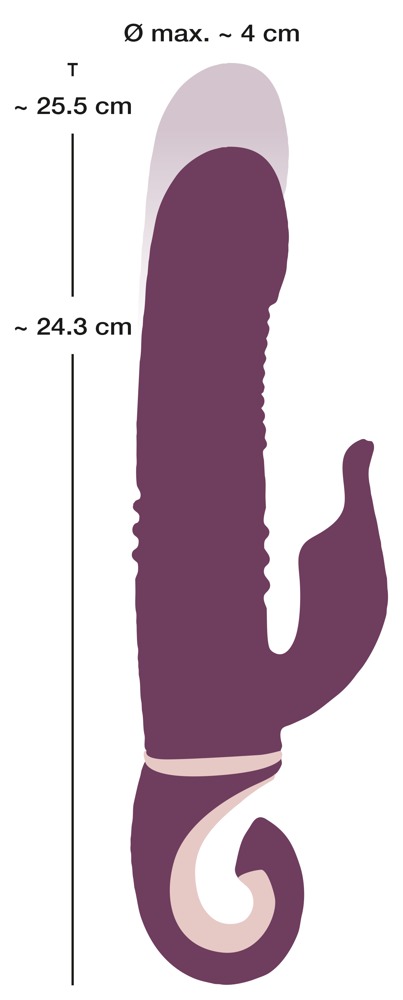 Długość całkowita od 24,3 cm do 25,5 cm. Długość wkładki 14,5 cm. Ø maks. 4 cm. Silikon, PU, ABS.