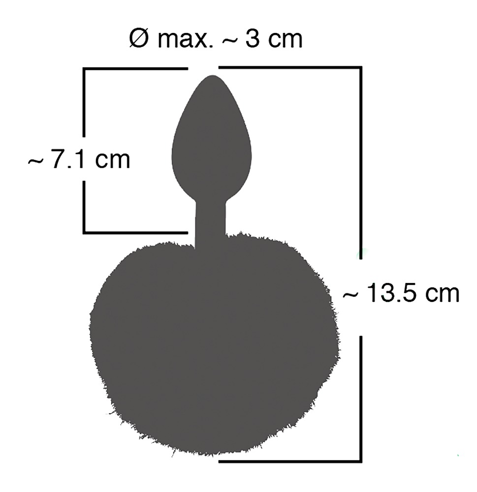Długość całkowita 13 cm, głębokość wsunięcia: 6 cm, korek Ø 2,8 cm. Materiał: silikon. Z fałszywym futrem.