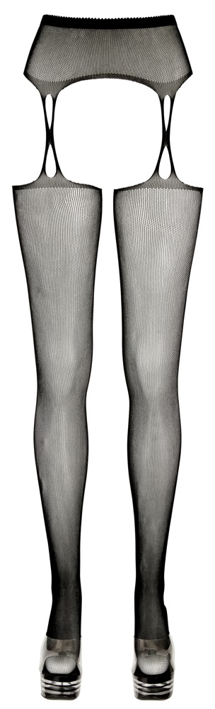 Jedwabiste rajstopy do pończoch w wyrafinowanym wyglądzie pasa do pończoch. Wykonane z drobnej siatki z tkanym wzorem na plecach.