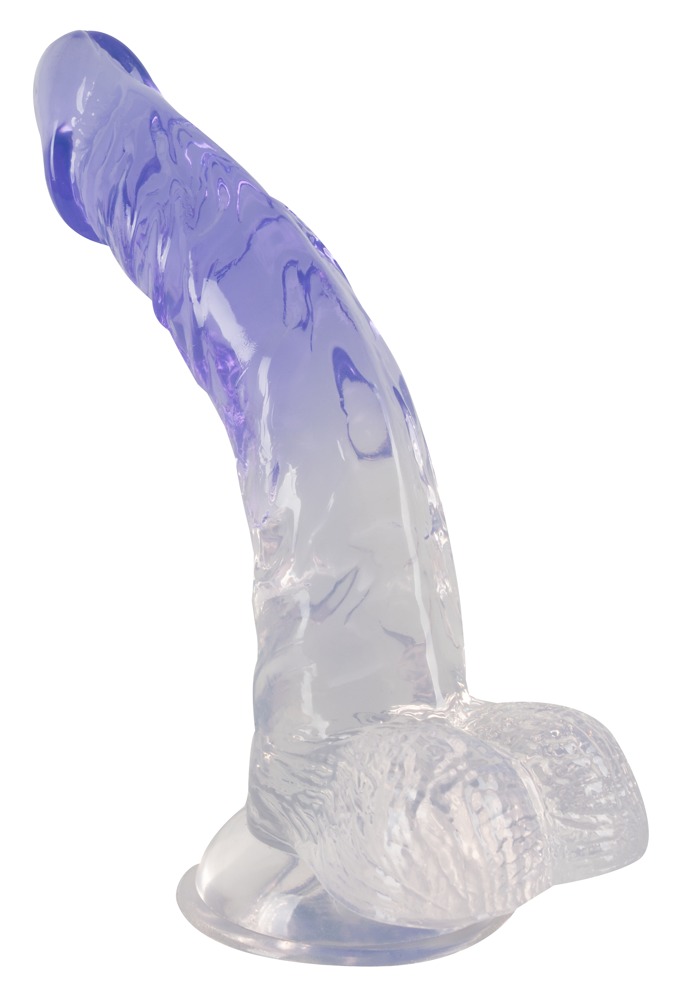 Szczegółowe i zakrzywione dildo z wybrzuszeniem, widocznymi żyłkami i jądrami. Idealny do stymulacji pochwy i odbytu. Elastyczne i z podstawą ssącą.