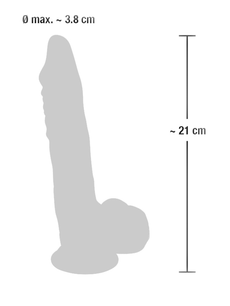 Długość całkowita 21 cm, głębokość wsunięcia 16 cm, Ø 3,1-3,8 cm. silikon.