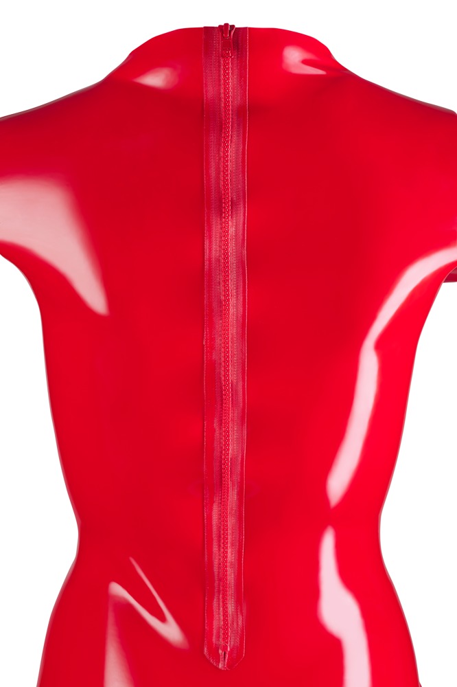 Czerwona sukienka z długimi rękawami ma zamek błyskawiczny, który można nosić zarówno z przodu, jak i z tyłu. Dipped na płaskiej formie.