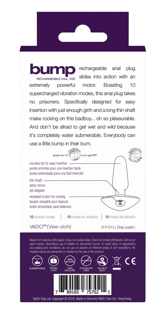 VEDO BUMP - SMUKŁY KOREK ANALNY Z WIBRACJMI FIOLETOWY
