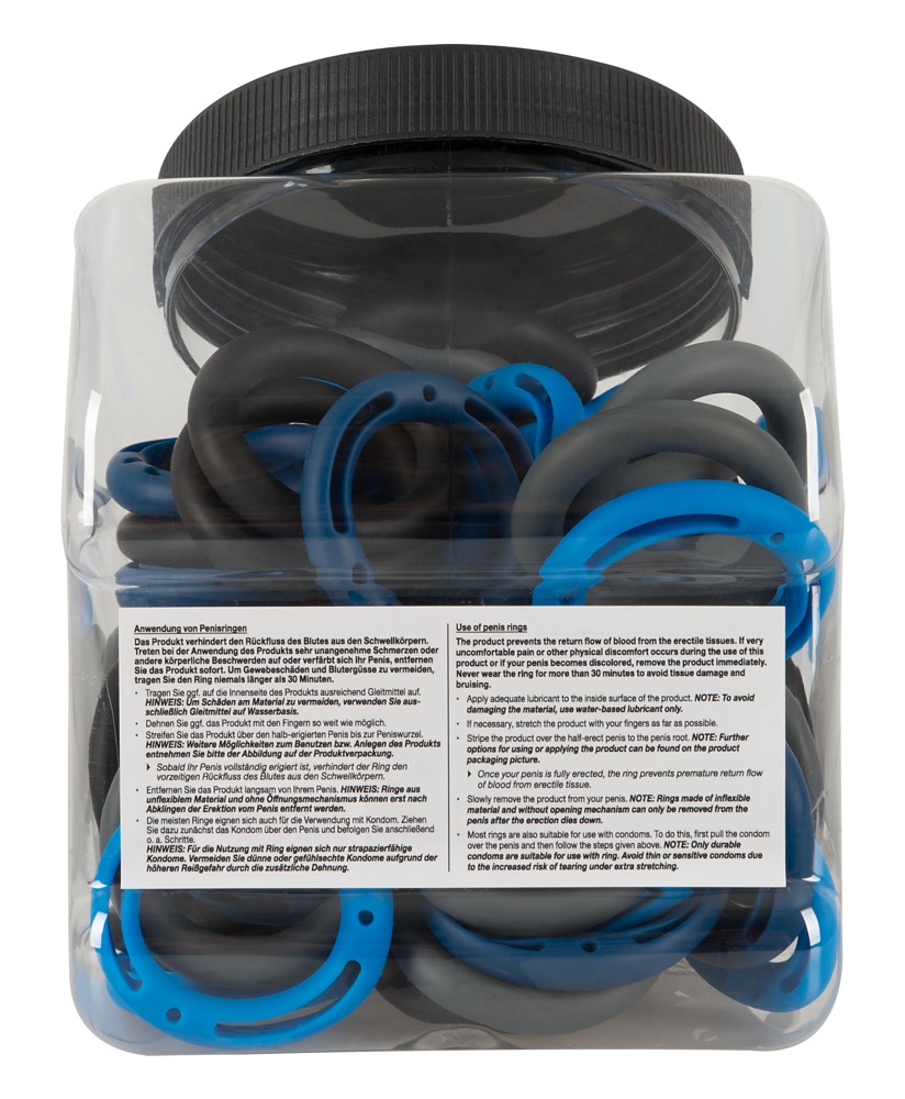 Ten pakiet dostaw jest wyposażony w 4 rodzaje pierścieni penisa, które każdy chce mieć na swoim penisie - niebieskie pierścienie penisa są nieco bardziej elastyczne i bardziej komfortowe dla początkujących, podczas gdy zaawansowani użytkownicy prawdopodobnie wolą ciemne pierścienie, które są znacznie mocniejsze. Wystarczy sięgnąć do pudełka i wyjąć pierścień na odpowiednią okazję.