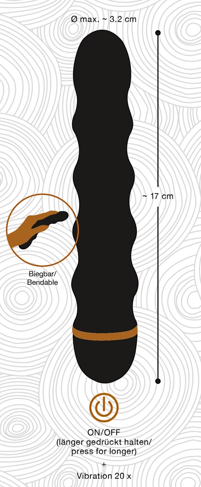 Zasilany bateryjnie wibrator rowkowy o miękkiej fakturze dotykowej i ozdobnym pierścieniu w kolorze miedzi. Z zmysłowo falistym wałem dla powierzchni intensywnie stymulującej. 20 potężnych trybów wibracji zapewnia zróżnicowaną grę miłosną. Rowkowany wibrator jest przyjemnie elastyczny i łatwo sterowalny za naciśnięciem przycisku. Inteligentny uniwersalny produkt na każdą erotyczną okazję!