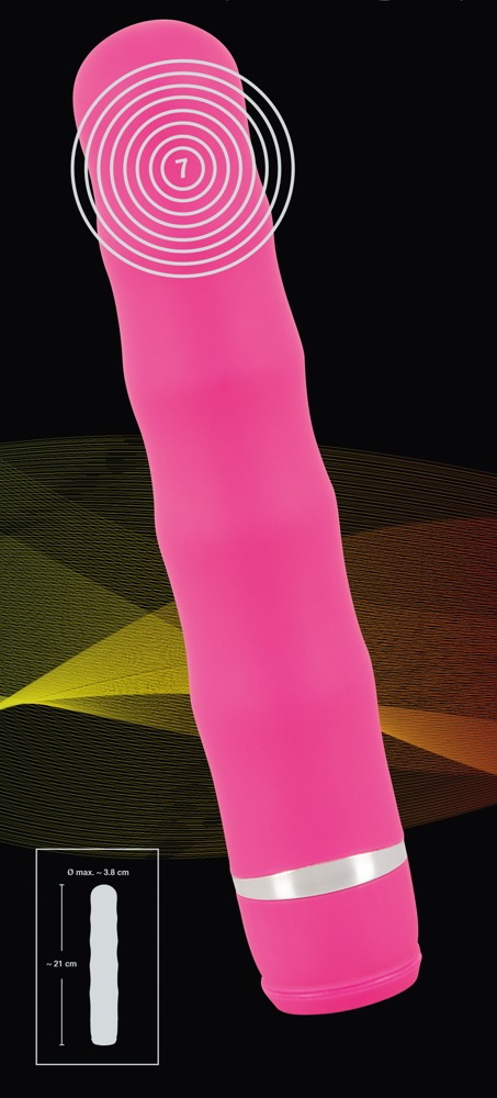Różowy. Długość całkowita 21 cm, Ø 3,5-3,8 cm. Materiał: ABS z powłoką PU.