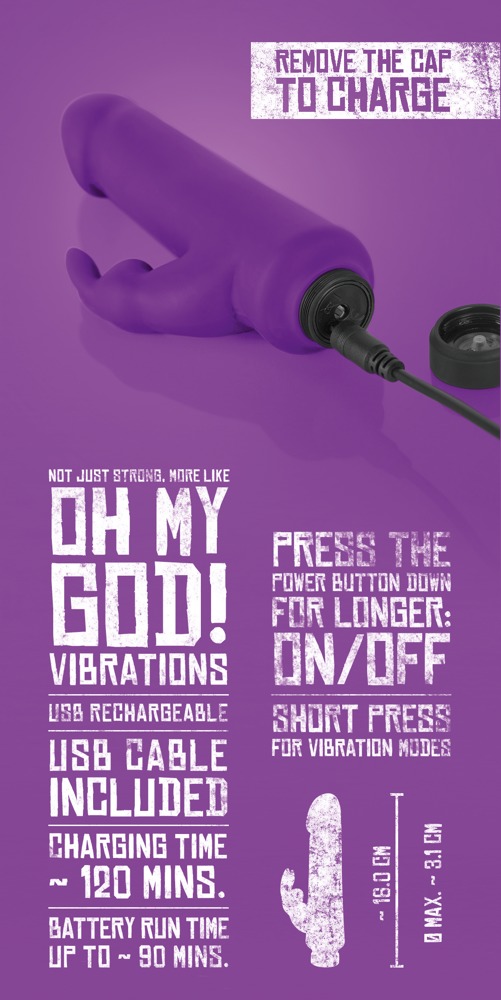 Ten fioletowy wibrator królika oczaruje Cię swoim prostym wałem i tantalizującą końcówką w kształcie odrobiny żołędzia - tak więc pochwowa ekstaza jest gwarantowana. Ale także dla miłośników stymulacji łechtaczki ten wibrator ma dużo w zapasie i żyje do swojej nazwy, ponieważ ramię stymulacji łechtaczki przychodzi jako mały królik z ruchomymi uszami, chętnie czeka, aby łaskotać perłę przyjemności. Lukrem na torcie jest 10 potężnych, ale cichych trybów wibracji, które można łatwo kontrolować za naciśnięciem przycisku na czarnej podstawie - nie tylko w suchych sytuacjach, ale nawet pod wodą, ponieważ ten skarb jest całkowicie wodoodporny! A po zakończeniu pracy, Twój nowy ukochany jest łatwo ładowalny za pomocą dołączonego kabla USB - jesteś gotowy do pracy ponownie!