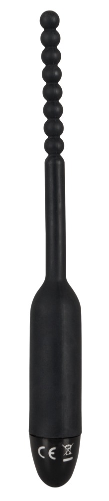 Czarny wibrator dilator z 7 trybami wibracji za naciśnięciem przycisku. Długość całkowita ok. 19 cm, długość pręta 10,5 cm, Ø ok. 8 mm.