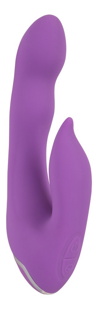 Silikonowy wibrator z ramieniem stymulującym łechtaczkę, każdy z silniczkiem. 7-stopniowa wibracja jest regulowana za pomocą pokrytych silikonem przycisków sterujących LED. (Baterie należy zamawiać oddzielnie: 2 x Micro/AAA).