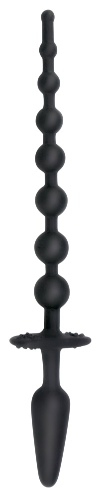 Długość całkowita ok. 32 cm. Wtyczka: głębokość wsunięcia ok. 8,5 cm, Ø 1-2,4 cm. Łańcuch: głębokość wsunięcia ok. 21 cm, Ø 0,7-2,4 cm. Czarny. Materiał: silikon.