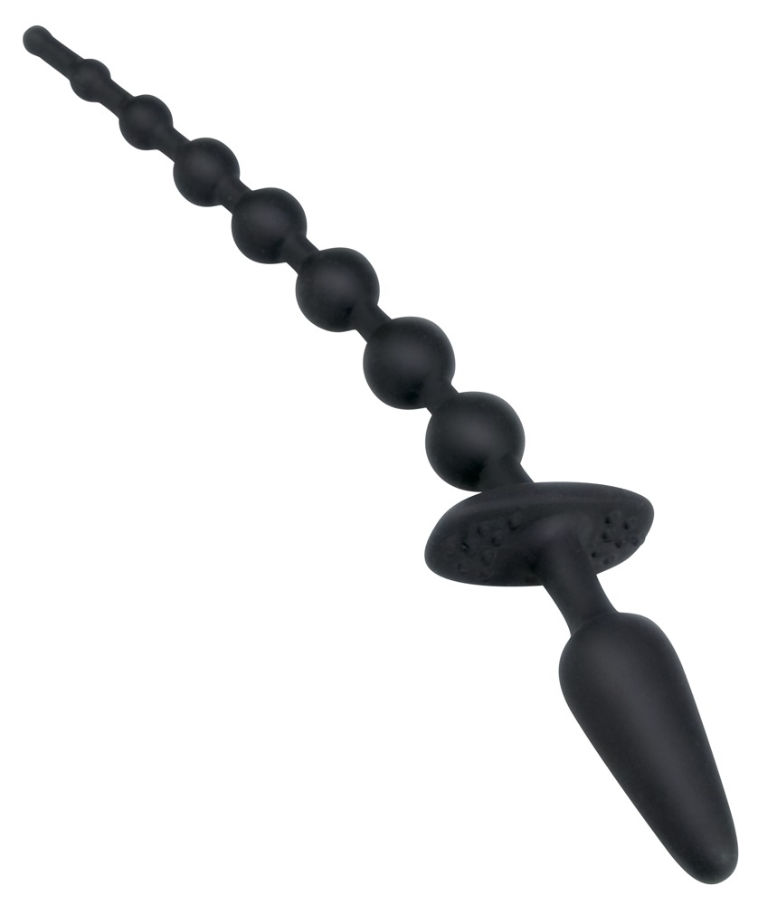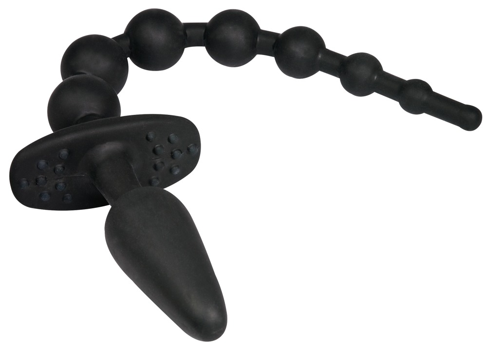 Z jednej strony anatomicznie idealnie ukształtowany korek odbytu z poręczną, szeroką, kolczastą podstawą, a z drugiej strony łańcuch kulowy z 7 kulkami różnej wielkości.
