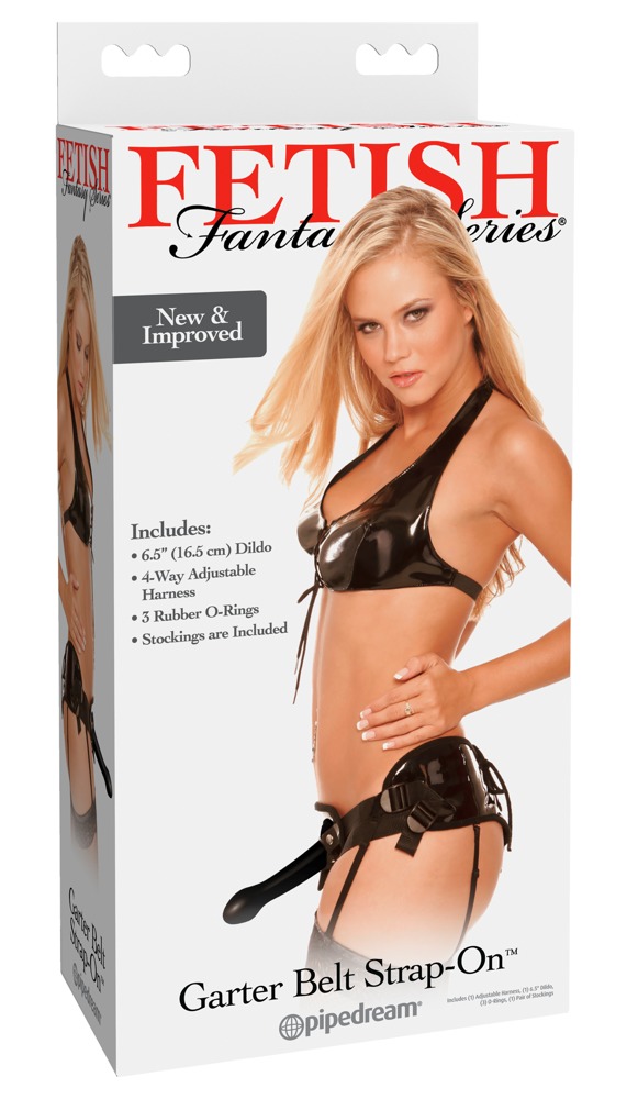 Nosi HER dla lesbijskich emocji lub pegging: Regulowany rozmiar strap-on z wyjmowanym dildo. Dildo z ekstra pulchną żołędzią i z przyssawką - może być używane również solo, a nawet bez użycia rąk. Może być włożony do przedniego paska za pomocą pierścienia i przycisków - również każde inne dildo/wibrator z przyssawką może być włożone do paska. Uprząż strap-on ma regulowany rozmiar, jest wzmocniona z tyłu i wyposażona w odpinane paski do pończoch. W komplecie jedna para pończoch.