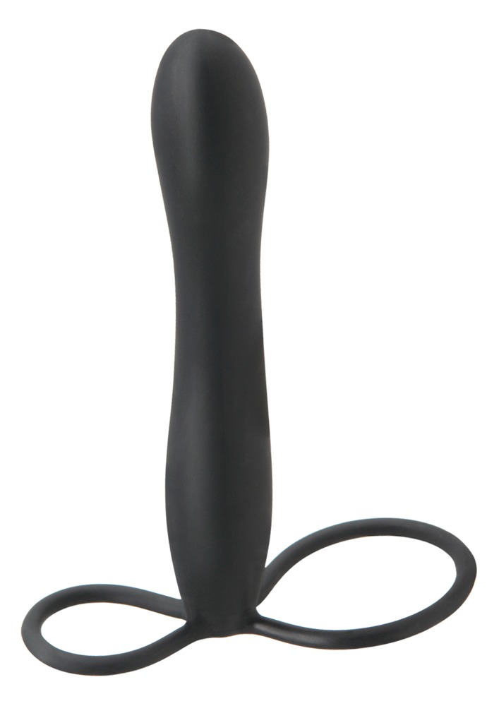 Penis i pierścień jąder oraz elastyczne dildo analne w jednym. Zapewnia długotrwałą erekcję poprzez efekt zastoju krwi i podwójną stymulację podczas penetracji. Ze stożkową końcówką ułatwiającą wkładanie.